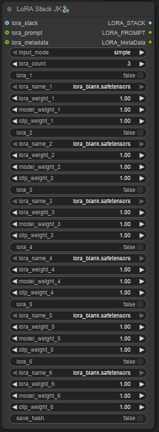 また類似ノードに「LoRA Stack JK」もあります。