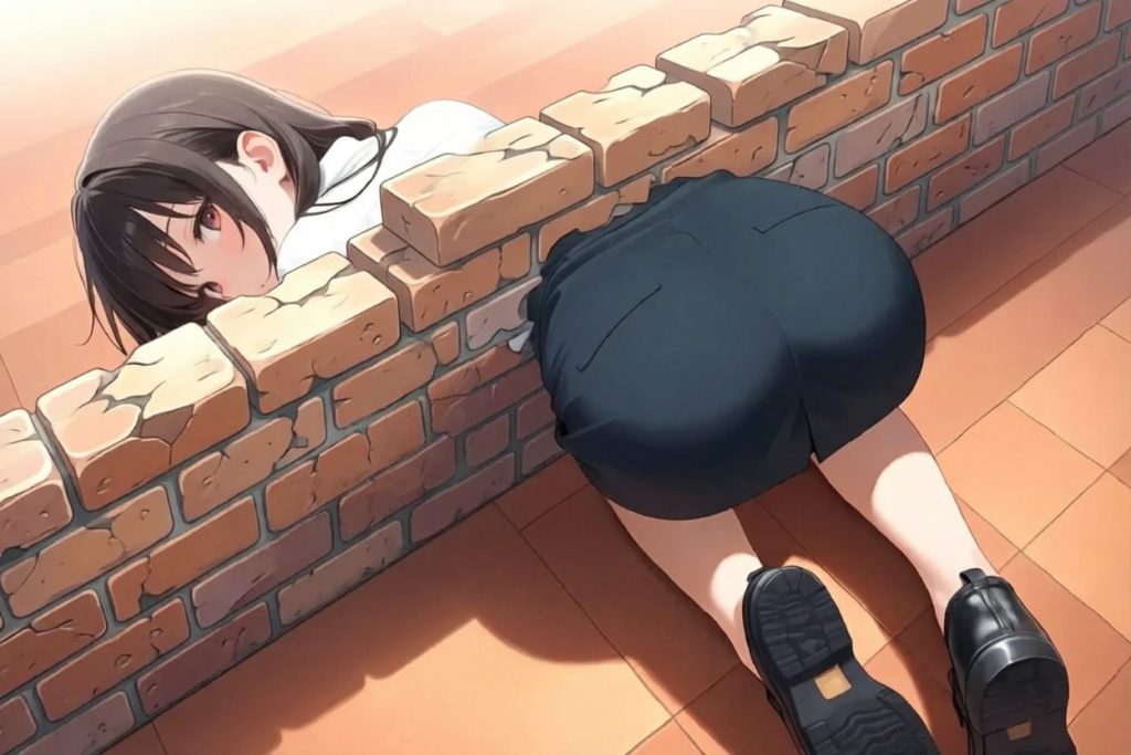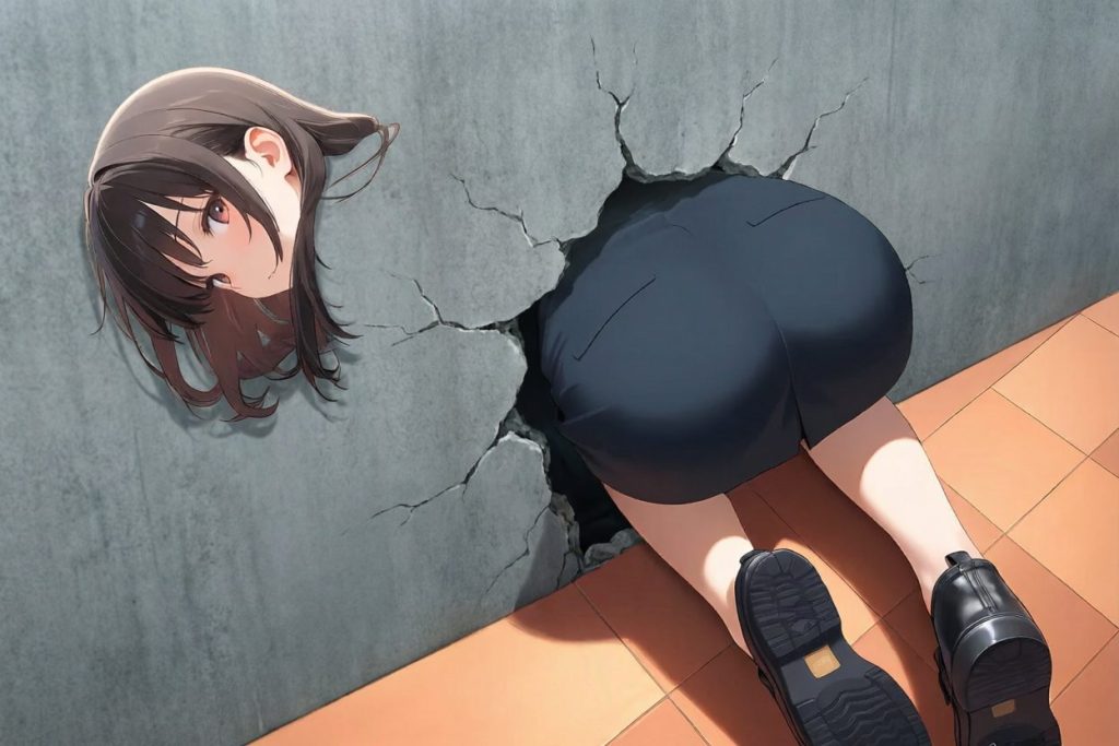 壁から尻だけがはみ出ている壁尻。そのシュールな光景におもわずいたずらしたくなっちゃうこと間違いなし。