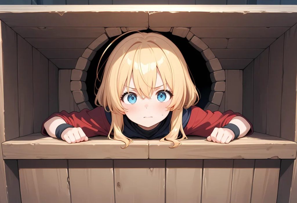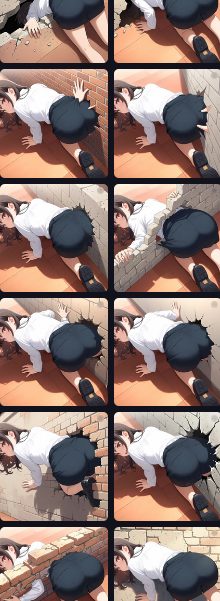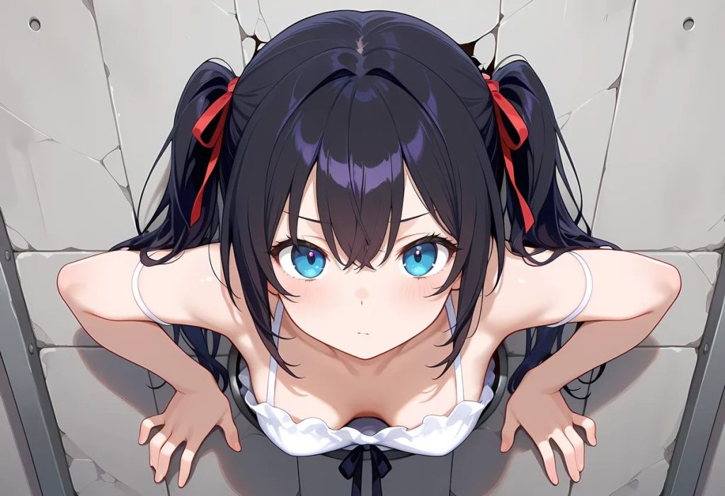 うまく伝わりません。どれも微妙ですね。「女の子の体に壁を挟む」が一番マシだったので、そこから「腕を見えなくする」でここまで作れました。もっとまともなプロンプトはあると思いますが……